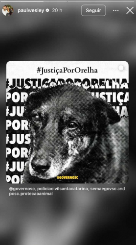 O ator compartilhou um post feito pelo Governo de Santa Catarina em parceria com a Polícia Civil do Estado, Delegacia de Proteção Animal e a Secretaria do Meio Ambiente.